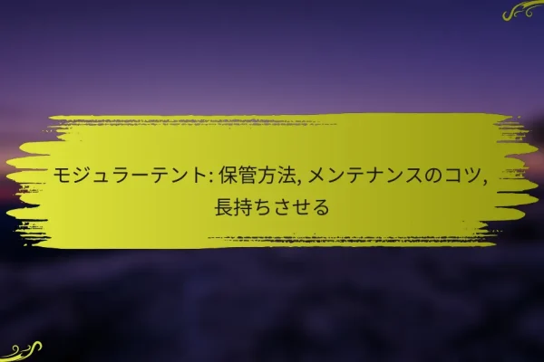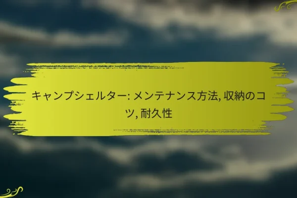 キャンプシェルターのメンテナンスは、耐久性を保ち、快適なキャンプ体験を実現するために不可欠です。定期的な清掃や破損部分の修理、防水処理を行うことで、シェルターの寿命を延ばすことができます。また、適切な収納方法を知ることで、次回のキャンプに備えつつ、シェルターの状態を良好に保つことができます。 キャンプシェルターのメンテナンス方法は? キャンプシェルターのメンテナンスは、耐久性を保ち、快適なキャンプ体験を実現するために不可欠です。定期的な清掃や破損部分の修理、防水処理を行うことで、シェルターの寿命を延ばすことができます。 定期的な清掃の重要性 キャンプシェルターの定期的な清掃は、汚れやカビの発生を防ぐために重要です。使用後は、内部と外部を軽く拭き、乾燥させることで、長持ちさせることができます。 特に湿気の多い環境では、清掃を怠るとカビが発生しやすくなります。少なくともシーズンごとに一度は徹底的に清掃することをお勧めします。 破損部分の修理手順 シェルターに破損が見つかった場合、早急に修理することが重要です。小さな穴や裂け目は、専用の修理キットを使用して簡単に修復できます。 まず、破損部分を清掃し、乾燥させた後、補修テープやパッチを貼ります。大きな損傷がある場合は、専門の修理業者に依頼することも検討してください。 防水処理の方法 防水処理は、シェルターの耐久性を保つために欠かせません。新しいシェルターは購入時に防水加工が施されていますが、使用するたびにその効果が薄れることがあります。 防水スプレーを定期的に使用することで、撥水効果を維持できます。特に雨が多い地域では、シーズン前に防水処理を行うことが推奨されます。 収納時の注意点 キャンプシェルターを収納する際は、完全に乾燥させることが重要です。湿った状態で収納すると、カビや臭いの原因になります。 また、収納袋に無理に詰め込むと、素材が傷む可能性があります。適切なサイズの収納袋を使用し、ゆったりと収納することを心がけましょう。 メンテナンスに必要な道具 キャンプシェルターのメンテナンスには、いくつかの基本的な道具が必要です。例えば、柔らかいブラシ、清掃用の布、防水スプレー、修理キットなどがあります。 これらの道具を揃えておくことで、シェルターのメンテナンスがスムーズに行えます。特に、修理キットは常に携帯しておくと安心です。 キャンプシェルターの収納のコツは? キャンプシェルターの収納は、使用後のメンテナンスと同様に重要です。適切な収納方法を知ることで、シェルターの寿命を延ばし、次回のキャンプに備えることができます。 効果的な収納方法 キャンプシェルターを収納する際は、まず完全に乾燥させることが重要です。湿気が残っていると、カビや腐敗の原因になります。シェルターを折りたたむ際は、できるだけ平らにし、余分な空気を抜くことを心がけましょう。 収納する場所は、直射日光を避け、温度変化の少ない涼しい場所が理想です。これにより、素材の劣化を防ぐことができます。 収納時の圧縮テクニック 収納時にシェルターを圧縮することで、スペースを有効活用できます。まず、シェルターを軽くたたみ、次にロール状に巻いていくと、コンパクトに収納できます。 圧縮袋を使用するのも効果的です。空気を抜くことで、さらに小さく収納でき、持ち運びも楽になります。ただし、圧縮しすぎると素材を傷める可能性があるため、注意が必要です。 収納ケースの選び方 シェルターの収納ケースは、耐久性と防水性が求められます。ナイロンやポリエステル製のケースが一般的で、軽量で持ち運びやすいです。 また、サイズも重要です。シェルターがぴったり収まるサイズを選ぶことで、無駄なスペースを減らし、持ち運びやすくなります。必要に応じて、複数のポケットがあるケースを選ぶと便利です。 収納スペースの最適化 収納スペースを最適化するためには、シェルター以外のキャンプ用品との兼ね合いを考えることが大切です。シェルターを収納する際は、他のアイテムとのバランスを考え、効率的に配置しましょう。 また、収納場所には、キャンプ用品を一緒に整理できるような棚やボックスを利用すると便利です。これにより、次回のキャンプ準備がスムーズになります。 キャンプシェルターの耐久性はどのくらい? キャンプシェルターの耐久性は、使用する素材や設計、使用頻度によって大きく異なります。一般的には、数年から十年以上の耐久性が期待できるものもありますが、適切なメンテナンスが重要です。 耐久性を決定する要因 キャンプシェルターの耐久性は、主に素材、設計、使用環境、メンテナンスの4つの要因によって決まります。例えば、強風や雨にさらされる場所で使用する場合、耐候性の高い素材が必要です。 また、設計の工夫も重要です。風の影響を受けにくい形状や、強度を高めるための